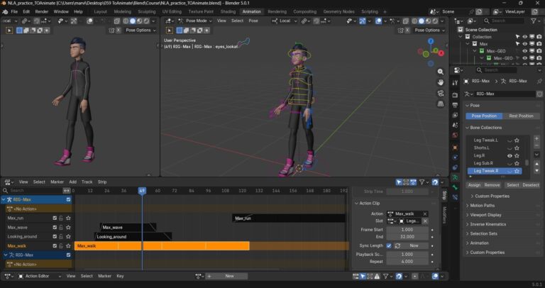 This course was especially valuable in helping me approach animation in Blender in a more organized, technical, and production-ready way, giving me the tools to manage complex scenes and workflows more confidently and efficiently.